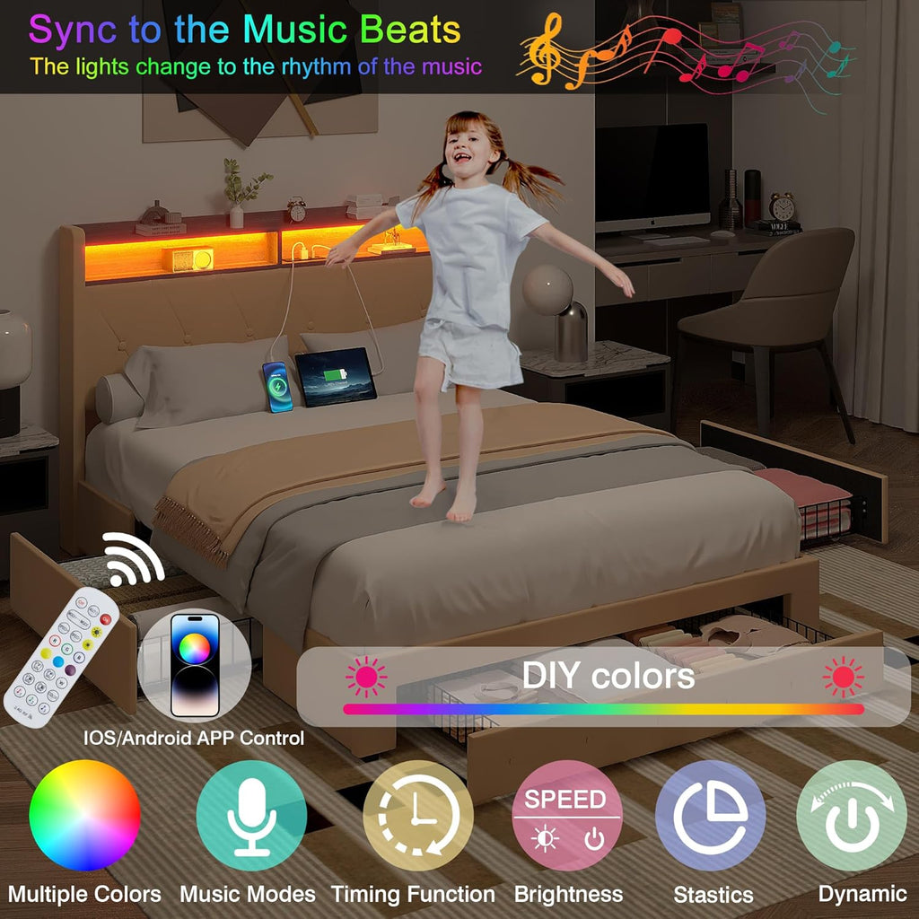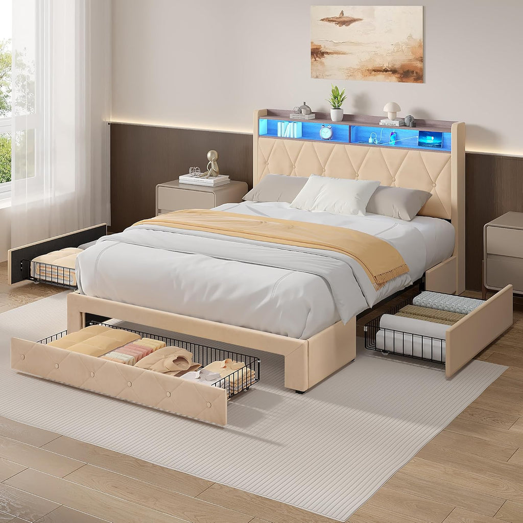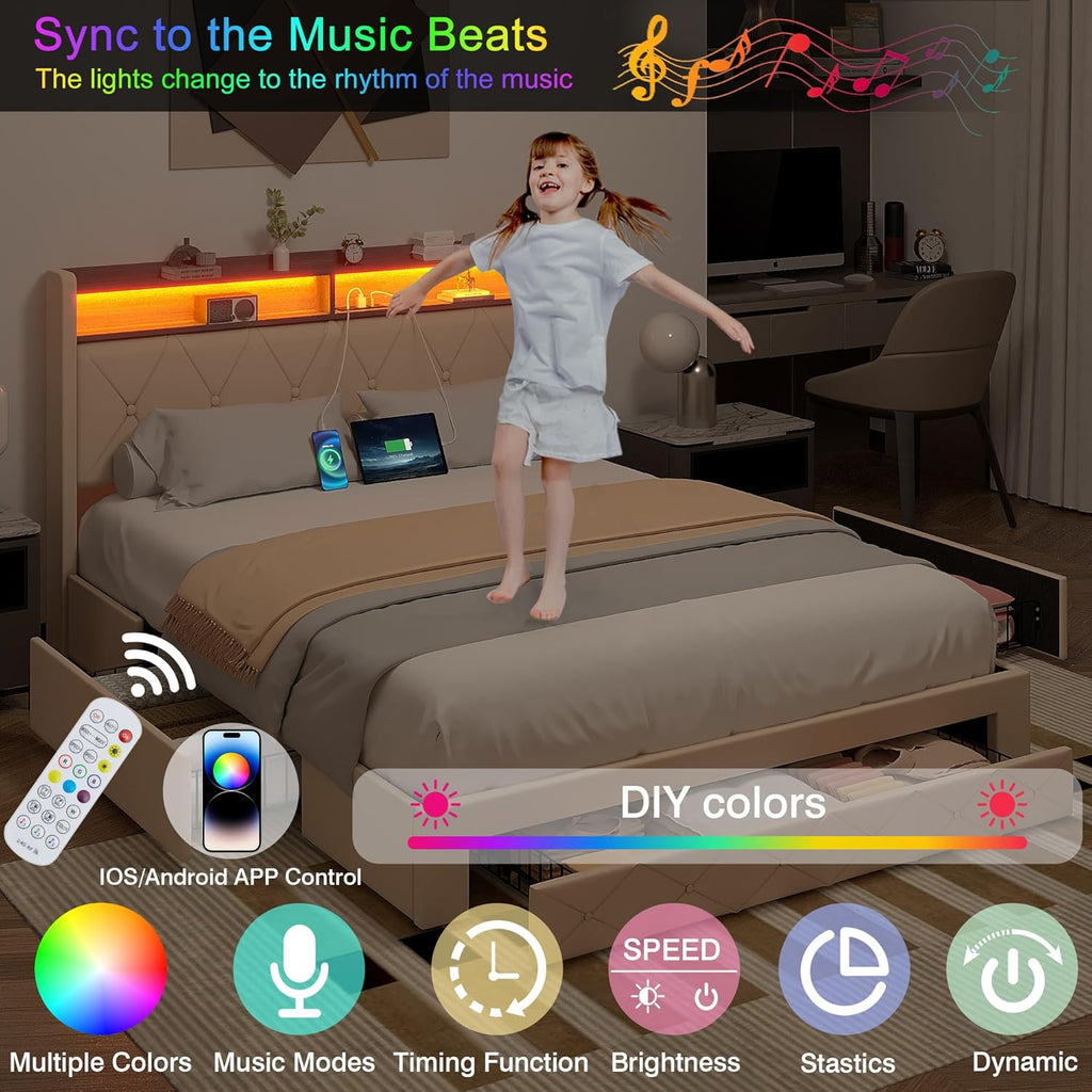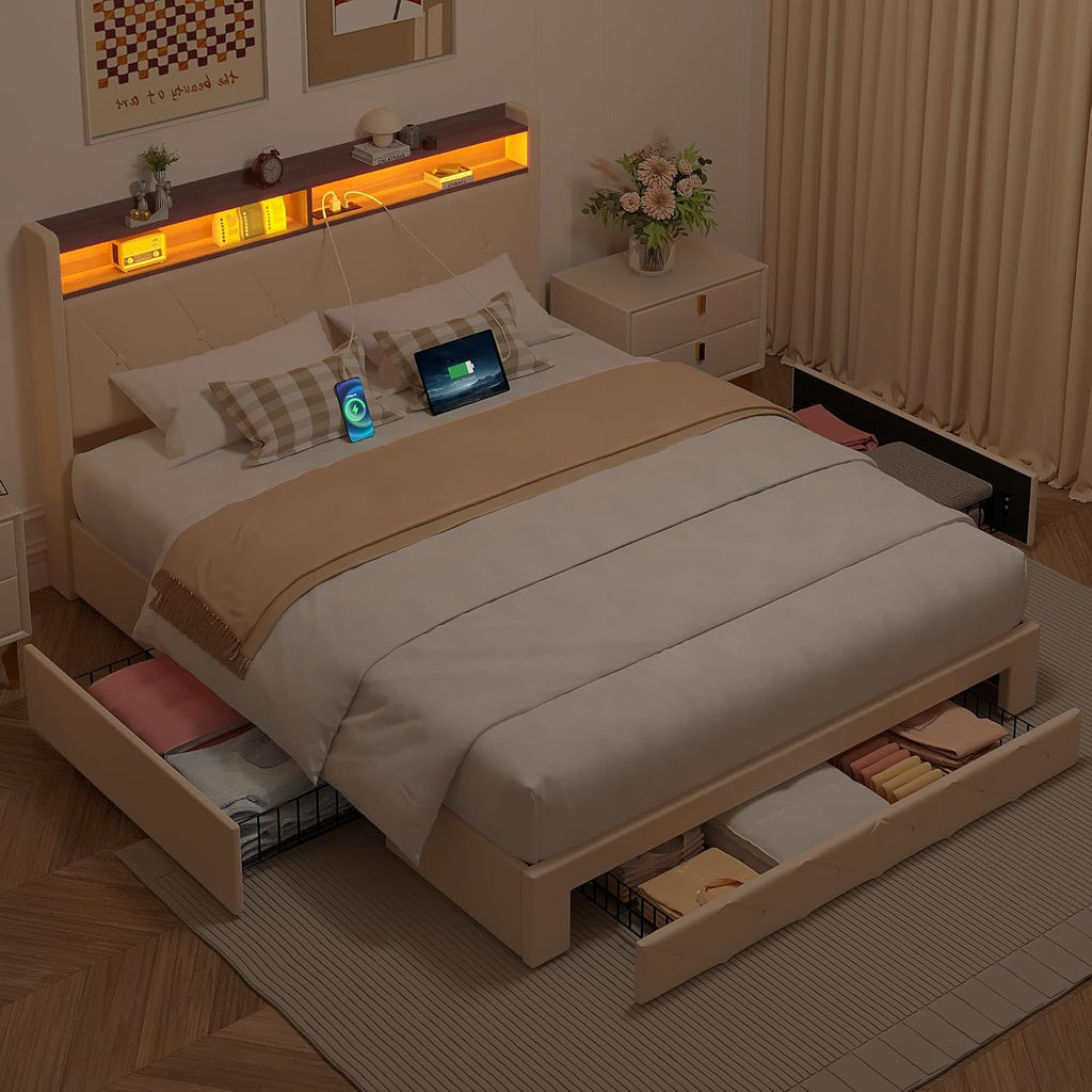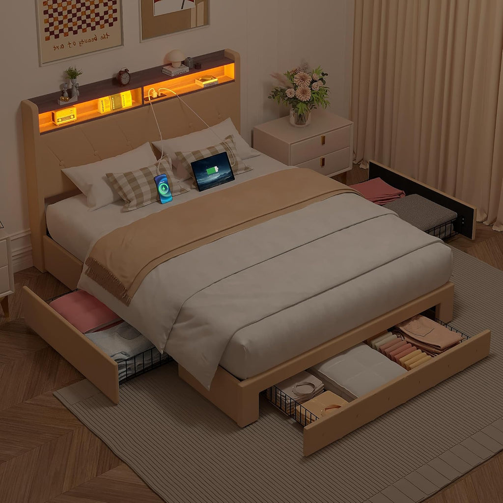 • Unbelievably Roomy: The queen bed frame with storage features a 2-tier headboard for storing items like clocks, phones and more. The queen bedframe with head board come with 3 drawers for seasonal clothes or other essentials, keep your bedroom spacious and tidy