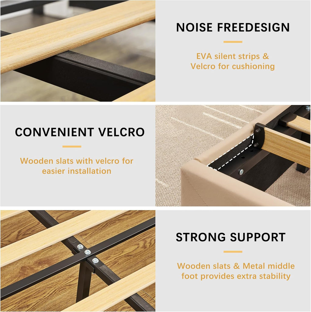 • Sturdy & Comfort: This bed frame queen size combine HD wood and strong metal for stable support. This velvet upholstered bed frame evenly distribute pressure to improve sleeping quality