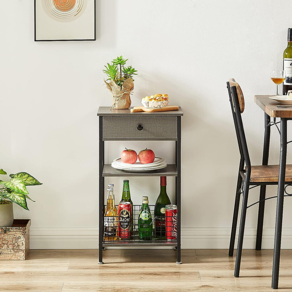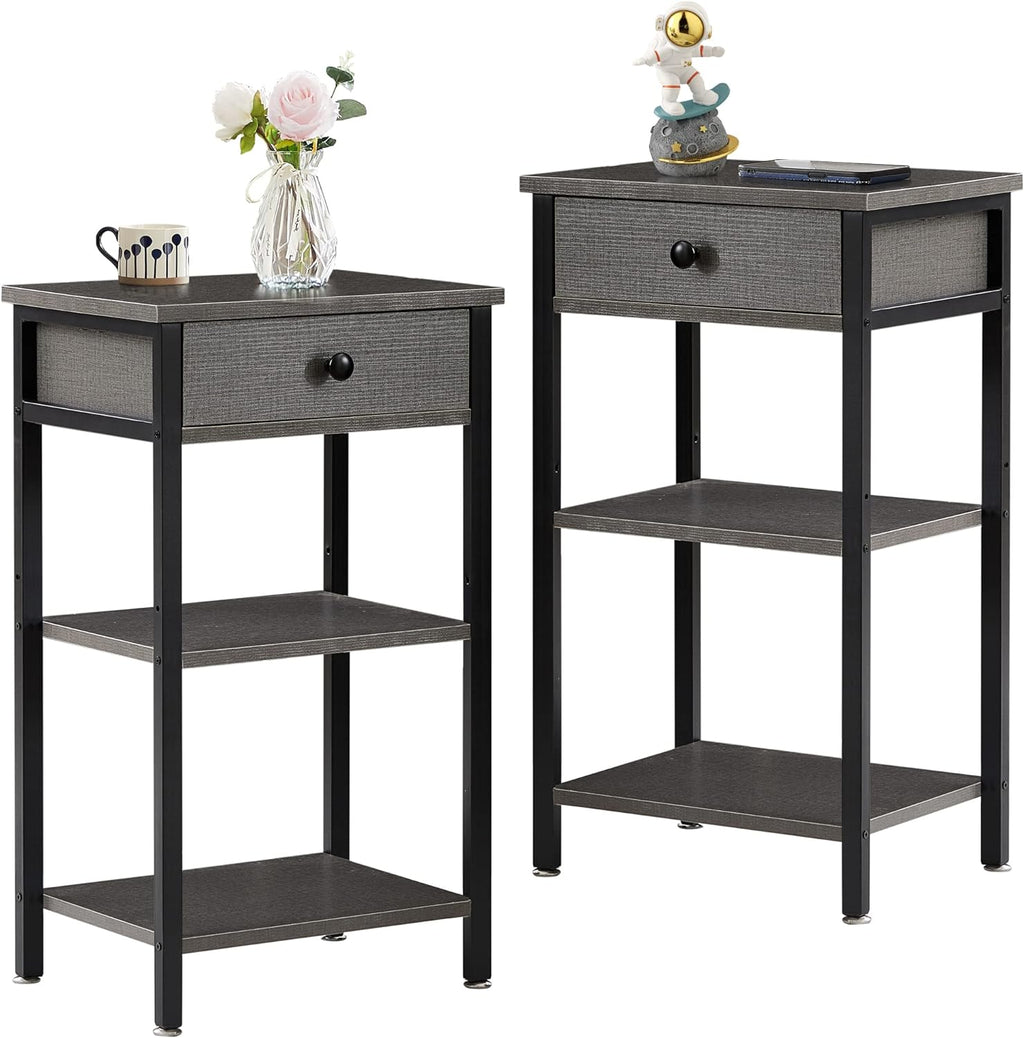 • Better Nightstand: 27.6 inches tall night stand with storage drawer and shelves keep your lamp, water glass, favorite novels within your arm’s reach,you don’t need to get out of your warm bed. Perfectly fit next to your bed, sofa, or hallway. Overall size: 11. 8" W x 15. 8" L x 21. 7" H.