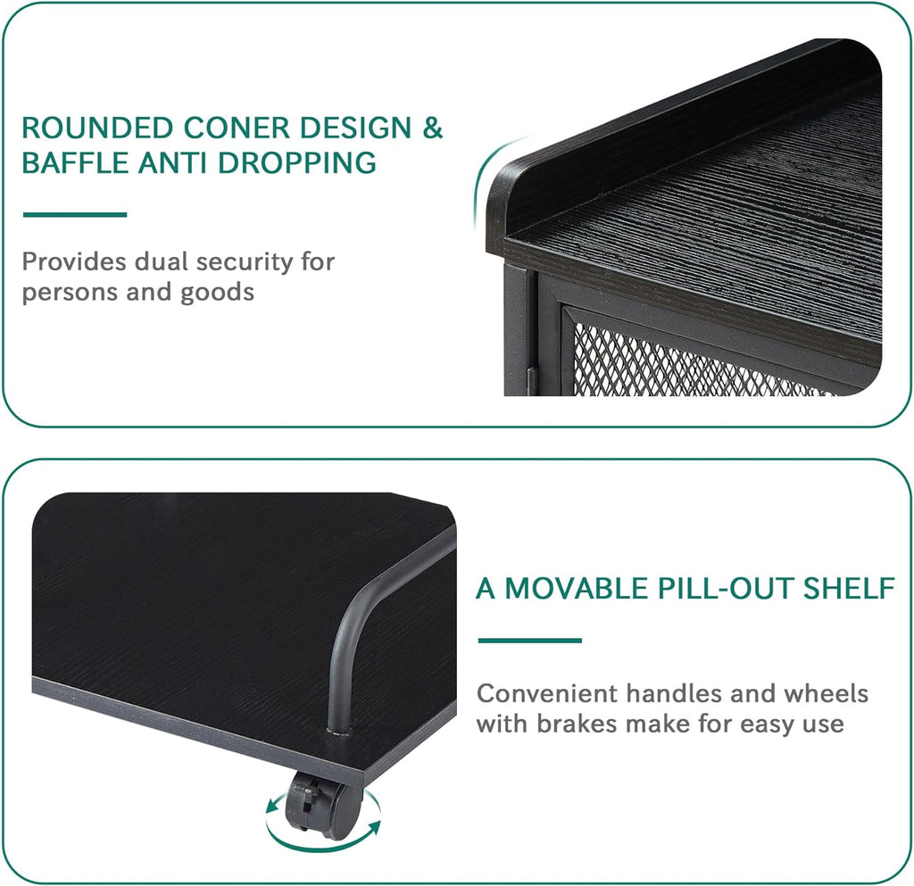 • 【Multifunctional Large Storage Shelf】:Multifunctionall design makes this filing cabinet very practical and can meet any of your needs. On the left side is the storage cabinet with magnetic iron mesh door to ensure security while still being able to see what's inside. On the right side is a shredder and computer tower stand with wheels for easy access. The roll-out stand can be completely pulled out for individual use, keeping your printer, scanner and files within reach while keeping your office tidy.